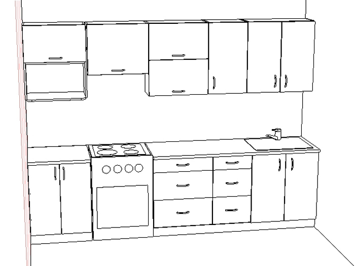 Материал фасада и корпуса: ЛДСП 16 мм. Ширина кухни 220 см.