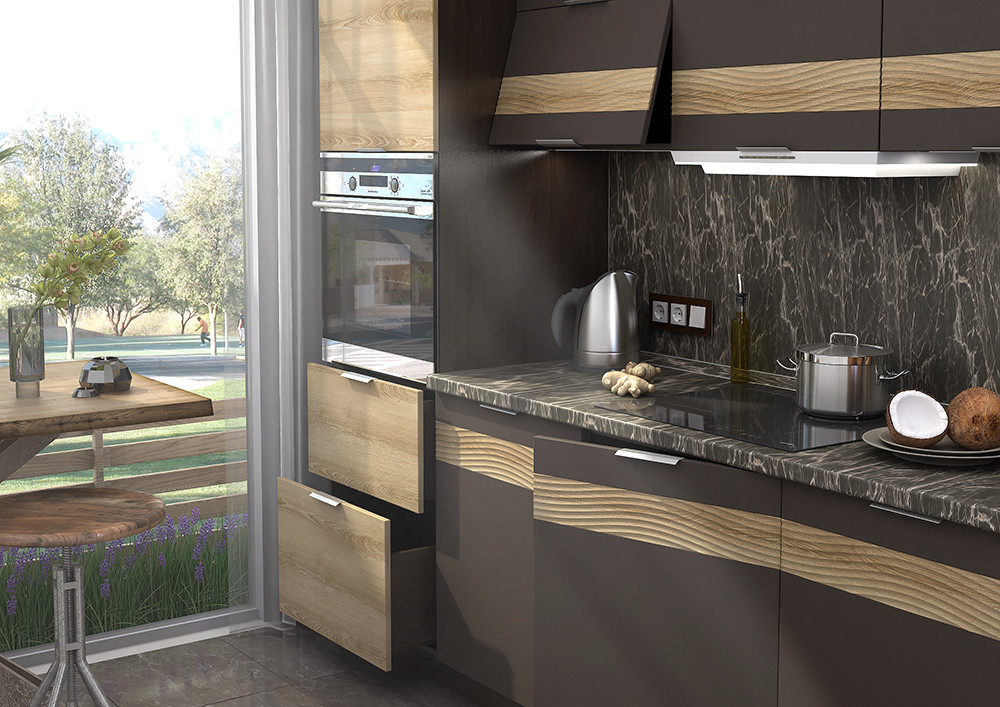 Материалы используемые для изготовления наших кухонь соответствует экологической норме Е1, безопасны для использования, в том числе и для детей. Основными плюсами ЛДСП являются высокая прочность, стойкость к температуре и долгий срок службы;