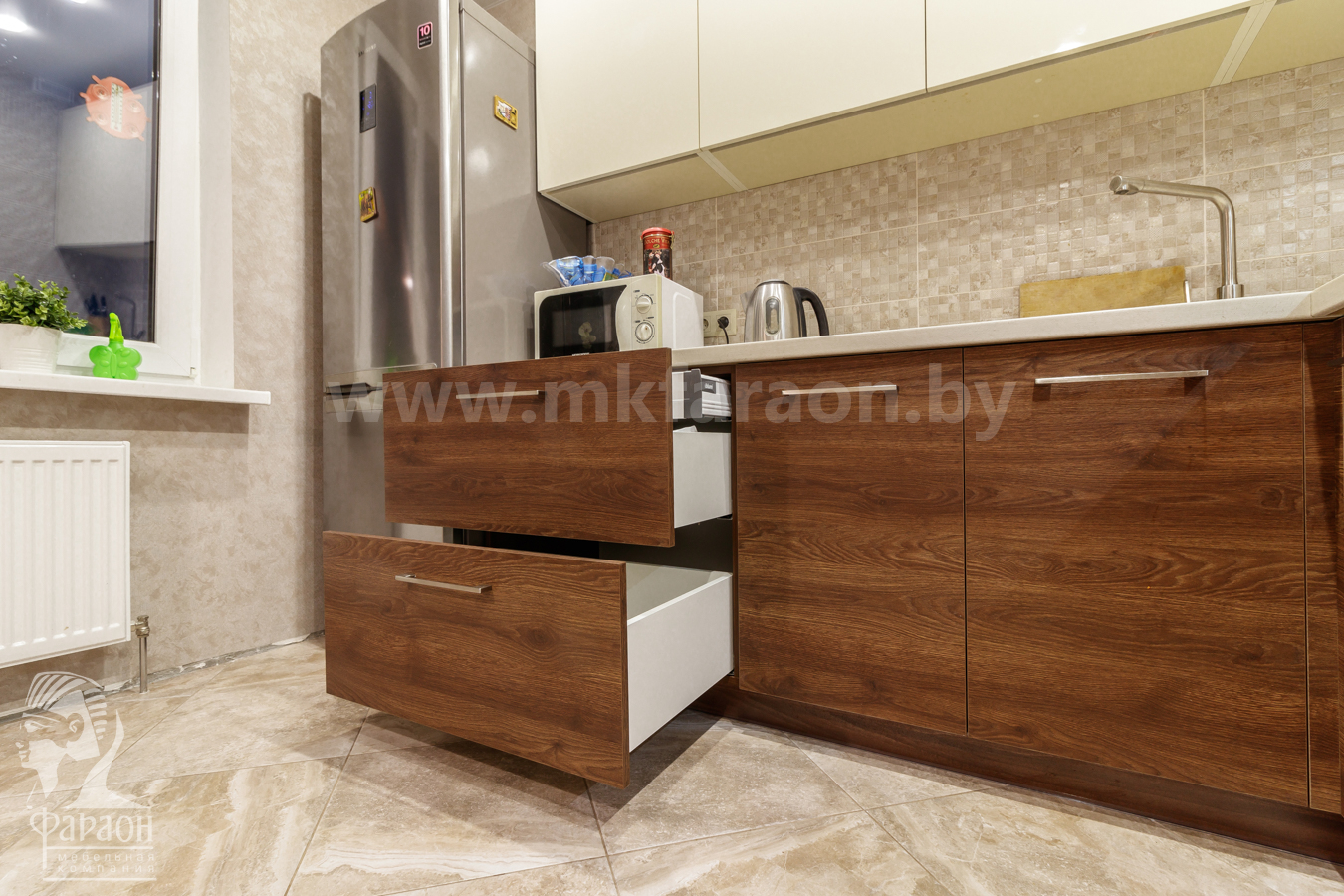 Материал фасада и корпуса: ЛДСП 16 мм. Ширина кухни 260 см.