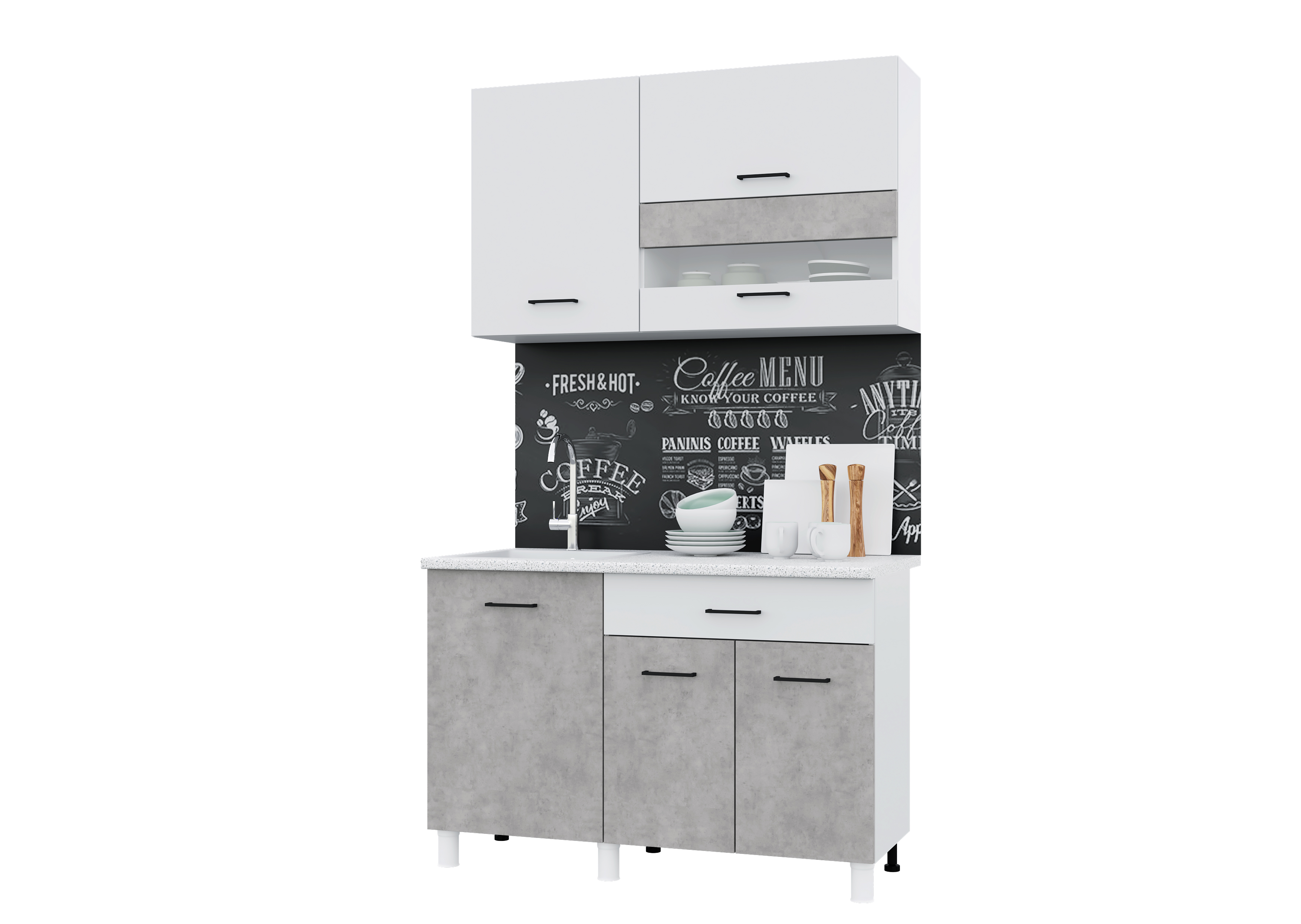 Кухня «Тренд 1.2 м» (бетон, белый)