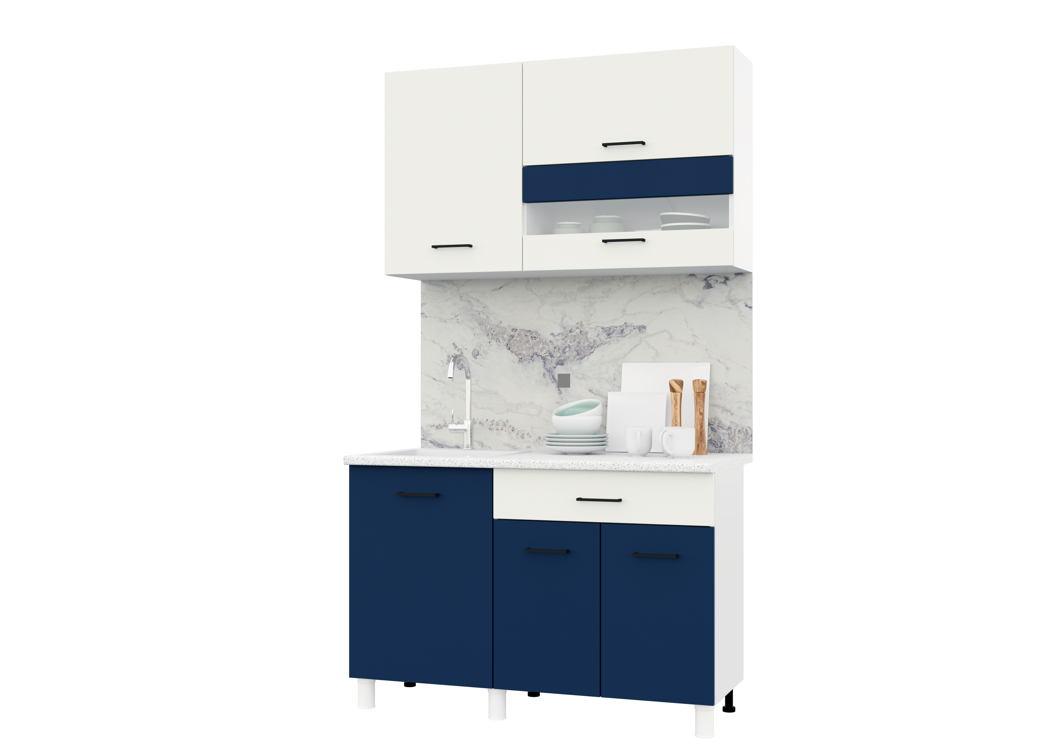 Кухня «Тренд МДФ 1.2 м» (холст сапфир, холст молоко)
