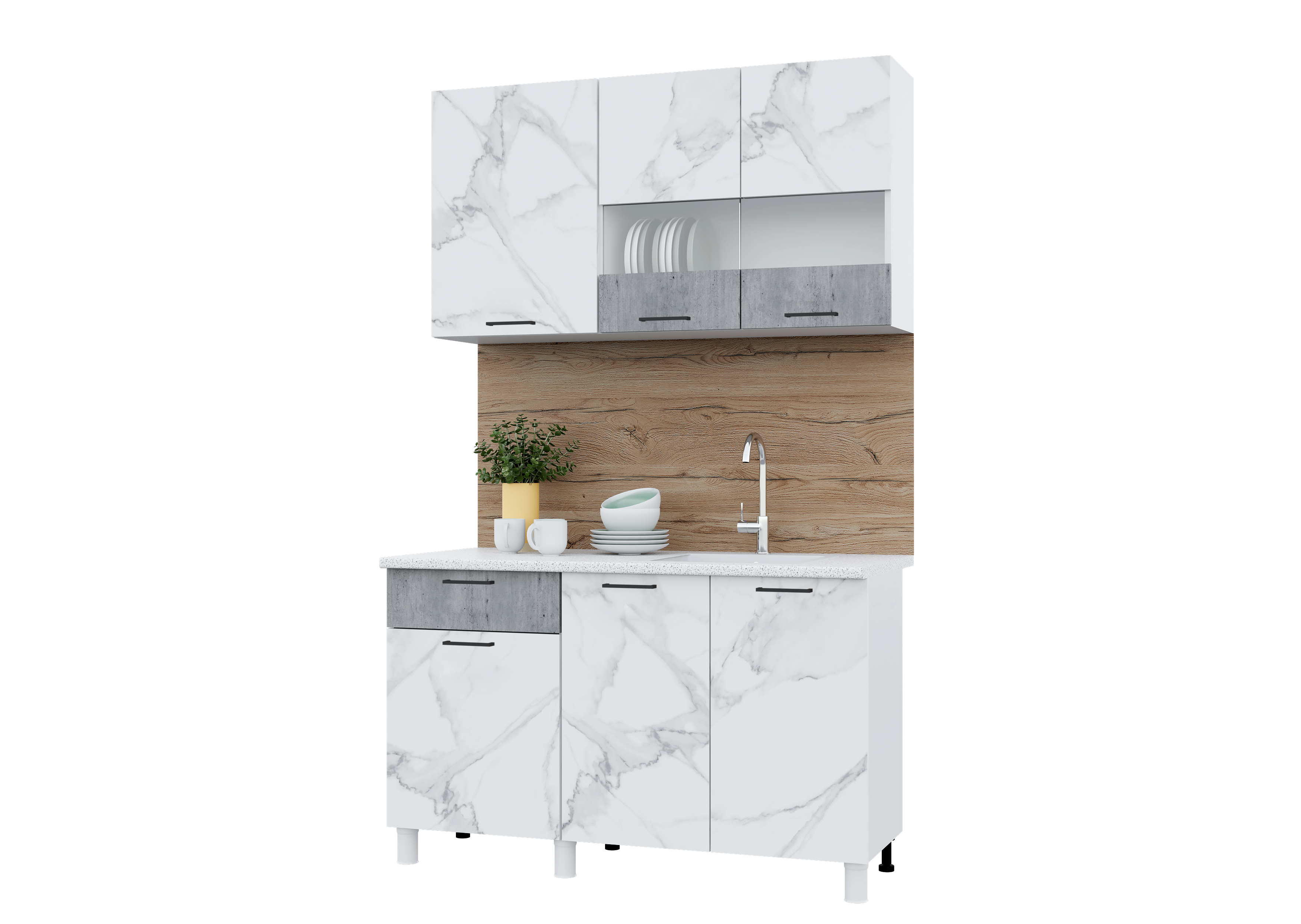Кухня «Тренд МДФ 1.3 м» (мрамор арктик, бетон грей)