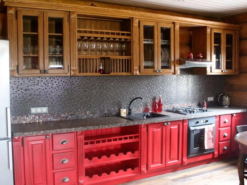 Материал фасада и корпуса: ЛДСП 16 мм. Ширина кухни 240 см.