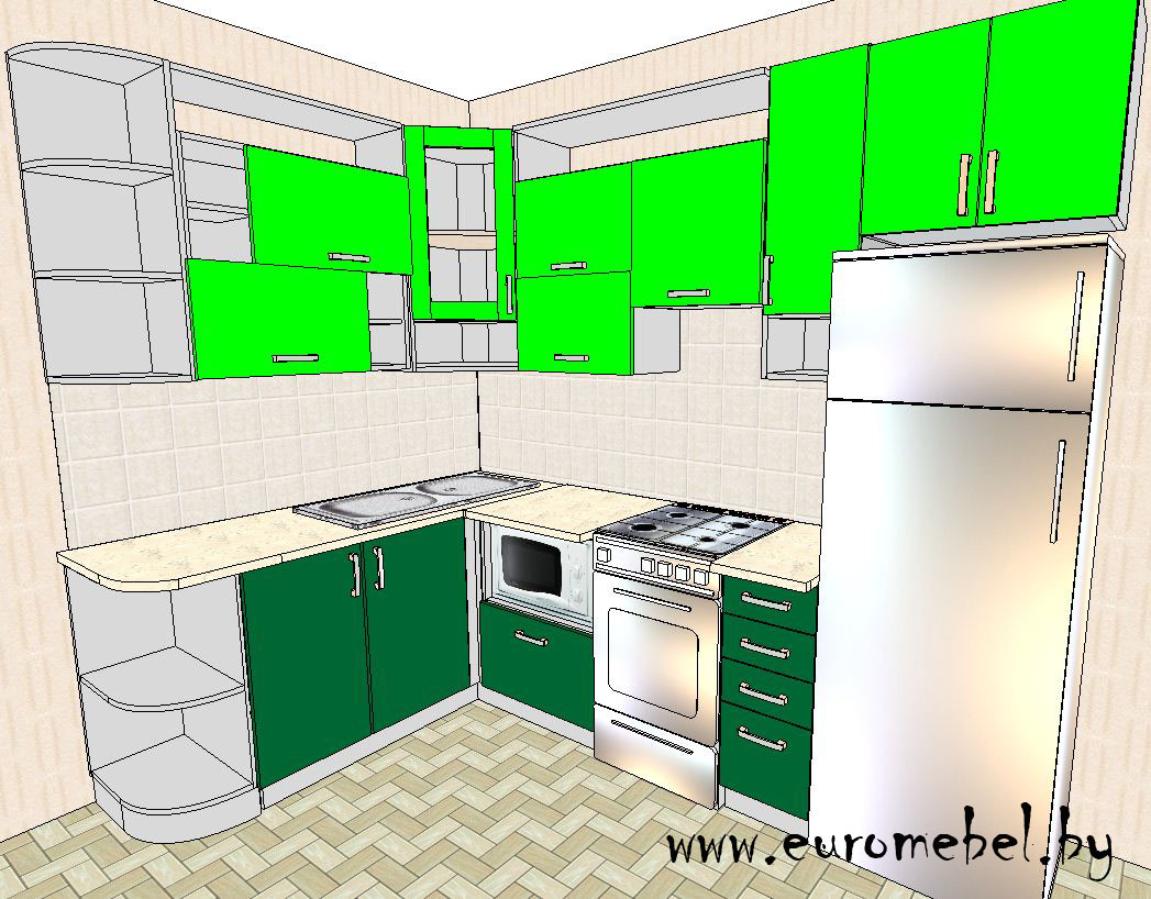 Материал фасада и корпуса: ЛДСП 16 мм. Ширина кухни 110 см.