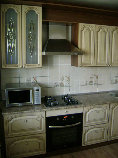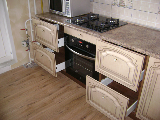 Матовые фасады «под дерево» с фрезеровкой.