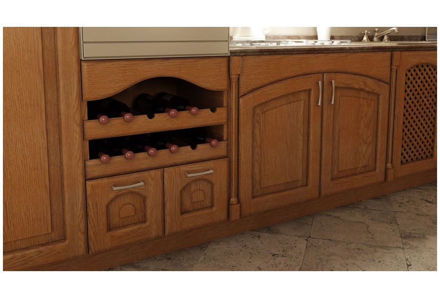 Угловая кухня «Alleanza Bach» выполнена в классическом стиле с использованием массива дерева. Ореховое исполнение принесет тепло и уют в интерьер вашей комнаты. Фасады декорированы симпатичными сетчатыми вставками и резным декором. Сплошная опора обеспечивает надежность и устойчивость всей конструкции.