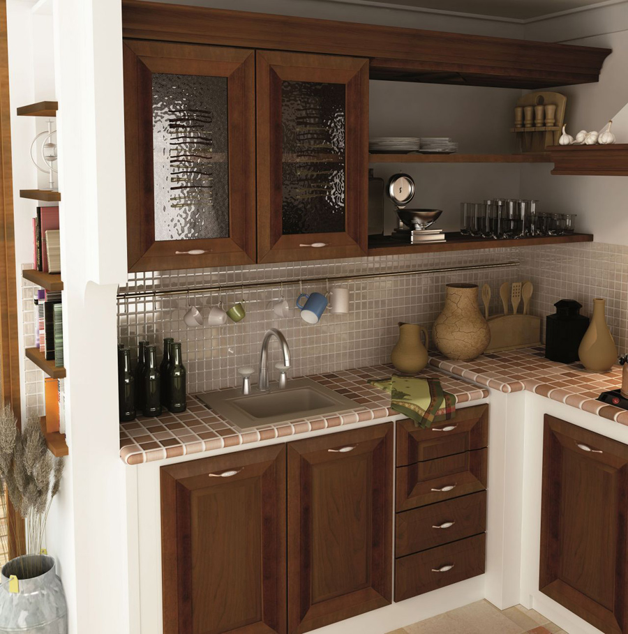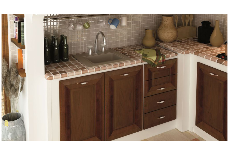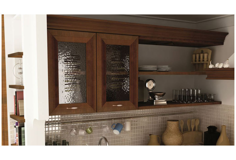 Угловая кухня «Alleanza Bellini» привлекает своим элегантным и стильным дизайном. Вся мебель изготовлена из массива натурального дерева. Корпус выполнен в белом цвете, фасады окрашены в коричневый и декорированы стеклянными вставками. Все модули украшены качественной хромированной фурнитурой.