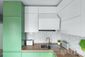 Глянцевые фасады розового цвета, вместительные шкафчики, удобная фурнитура.