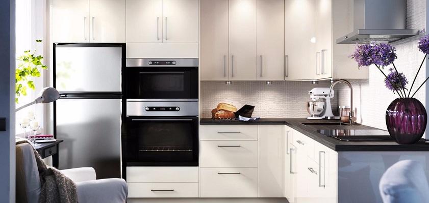 Угловая кухня представляет собой современный и функциональный гарнитур. Фасады окрашены в белый цвет, они сделают помещение визуально шире и светлее.