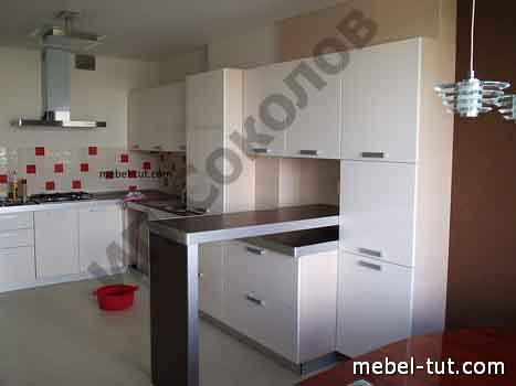 Кухня угловая белая с встроенной стойкой