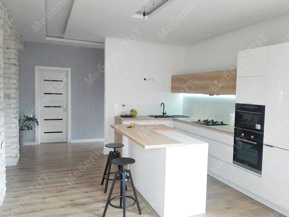 Угловая кухня с модульными шкафами. Комбинированные цвета.