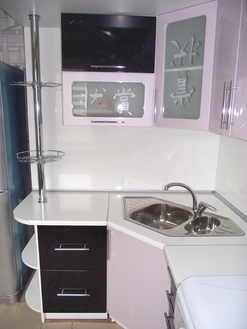 код 46705Шкафчики декорированы иероглифами. Комбинированный цвет: черный и бледно-розовый.
