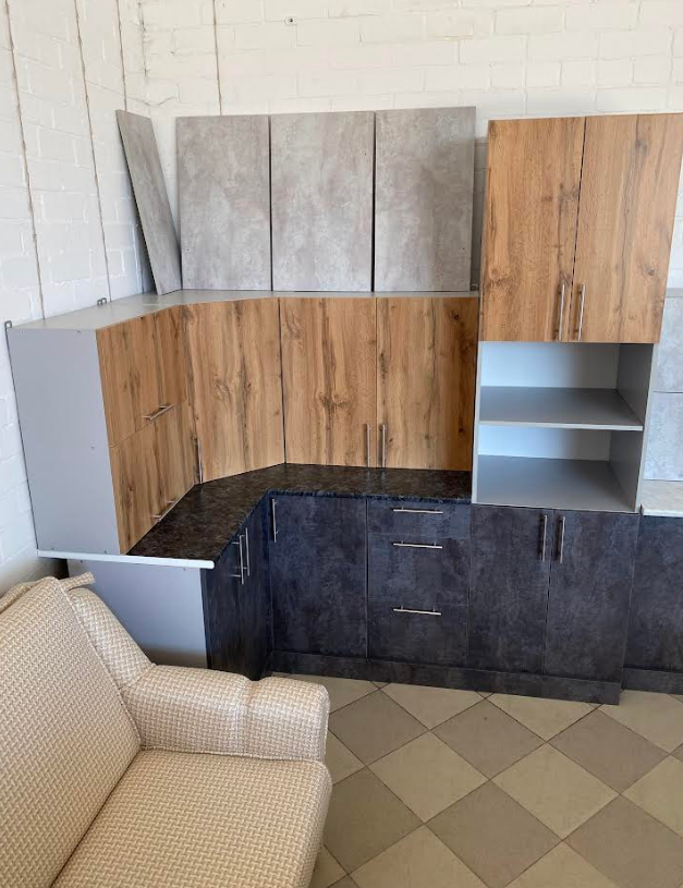 Материал фасада и корпуса: ЛДСП 16 мм. Ширина кухни 240 см.