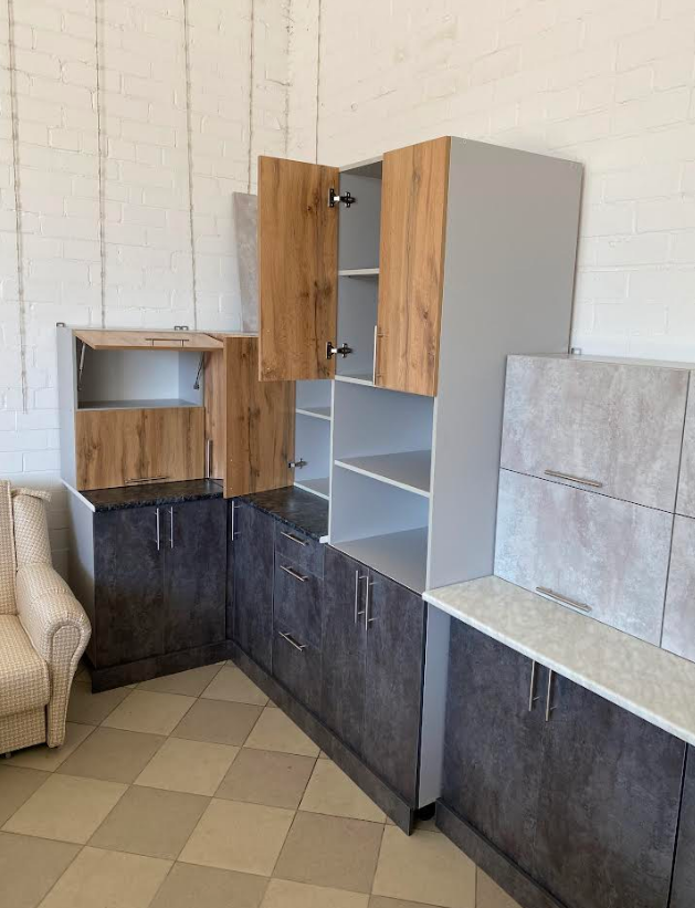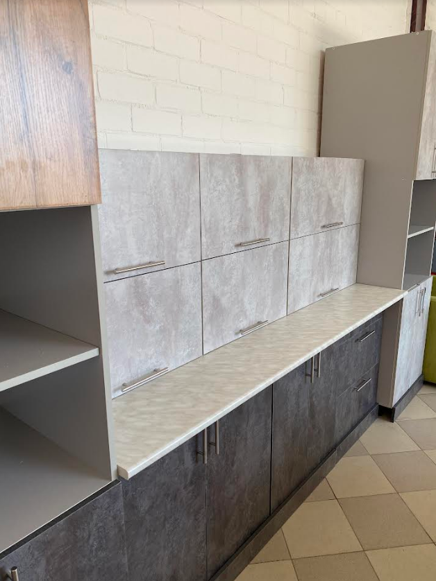 Материал фасада и корпуса: ЛДСП 16 мм. Ширина кухни 250 см.