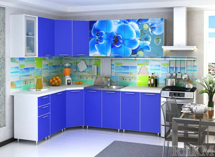 Кухня угловая «Фотофасад Орхидея синяя» 4.3 м
