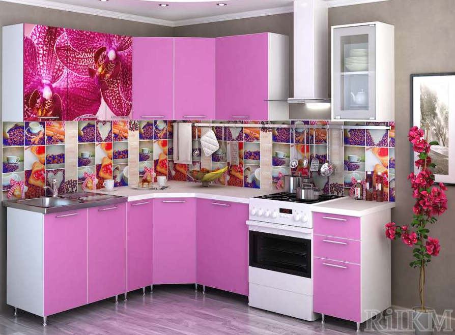 Кухня угловая «Фотофасад Орхидея» 3.8 м