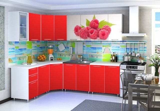 Кухня угловая «Фотопечать 1,85х2,45» Малина/Красный