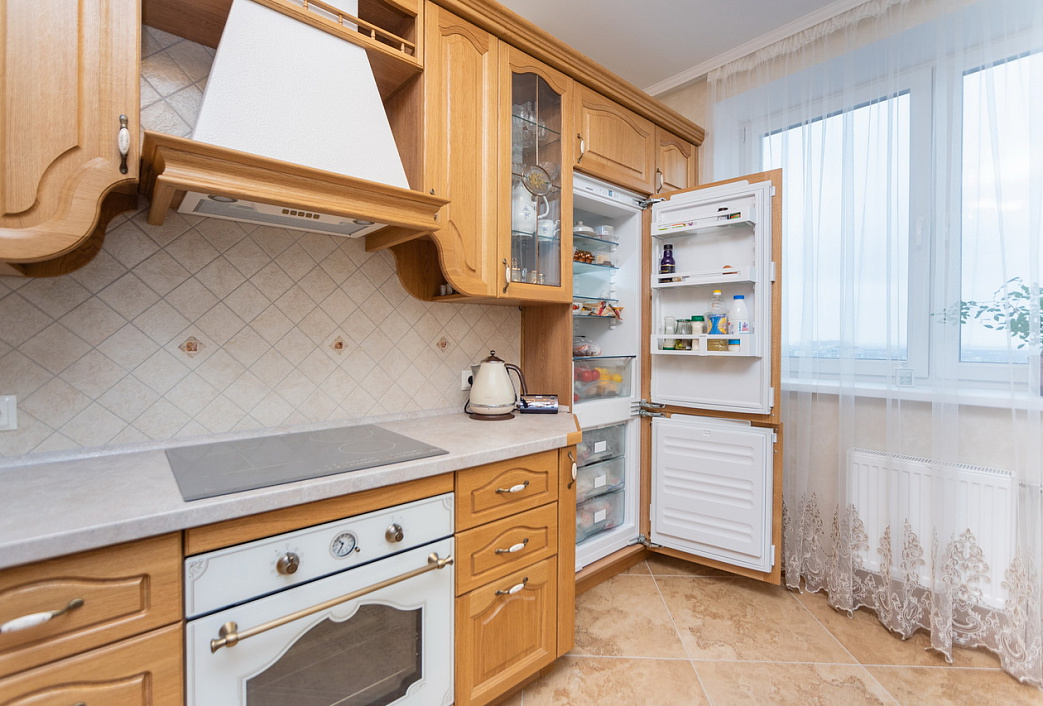 Ниши для встраиваемой техники, скинали с фотопечатью, удобная фурнитура.