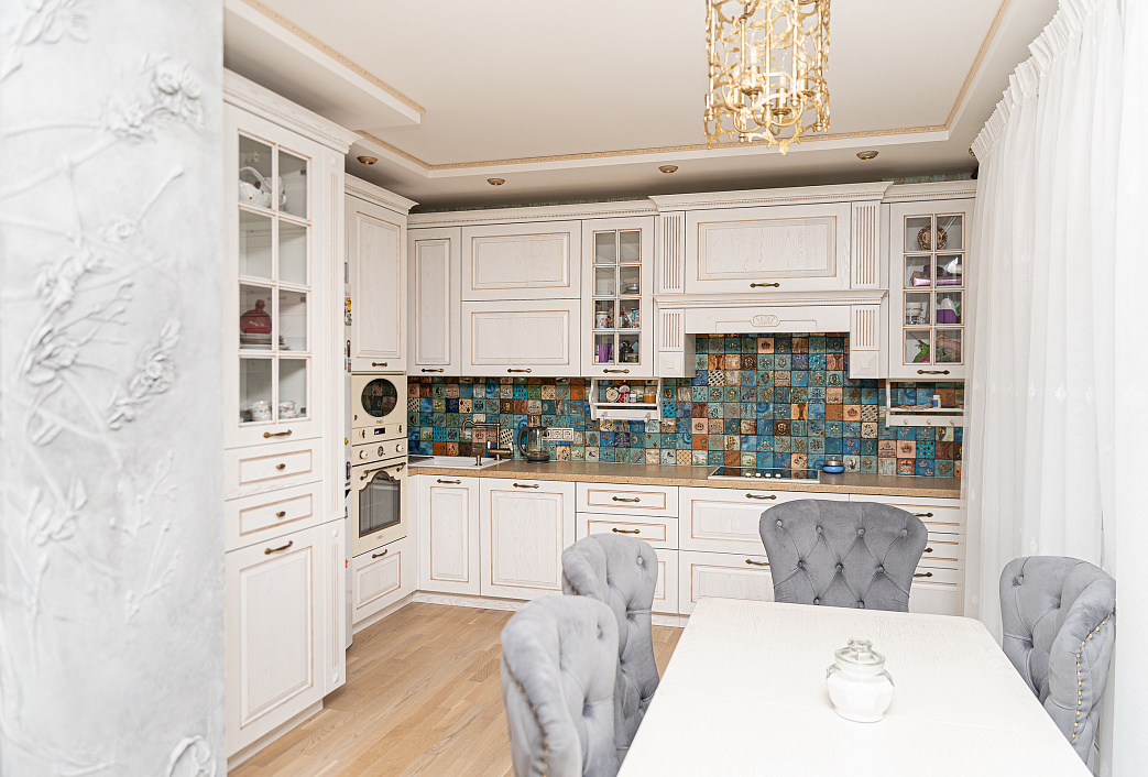 Классическая кухня угловой планировки от фабрики VogelBaum. Фасады из крашенного МДФ.