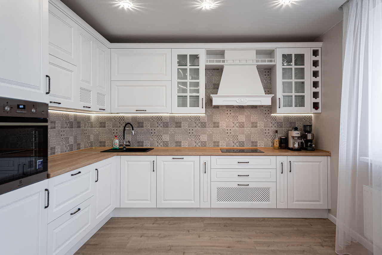 Угловая кухня из массива с классической чуткостью и современной строгостью.