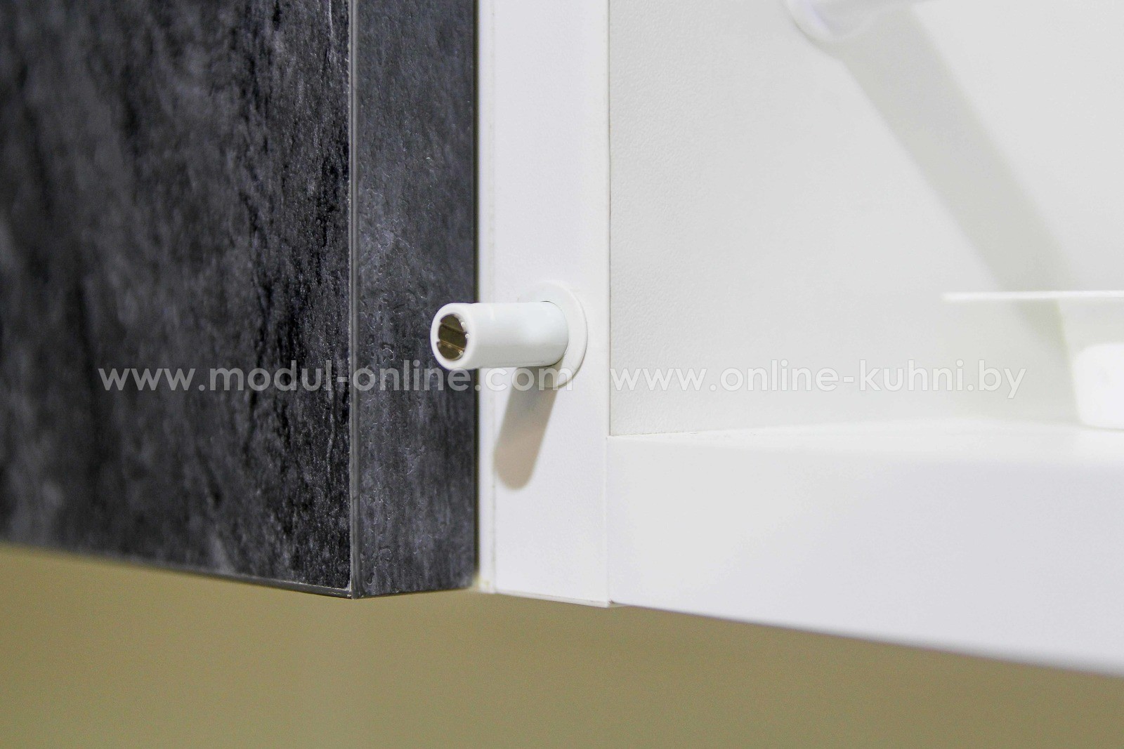 - Комплект поставки. Нижние и верхние кухонные модули, фасады (каждый в отдельной упаковке), цоколь, защитный профиль, столешница, пристенный плинтус + заглушки, сушка, ручки, соединительные планки.