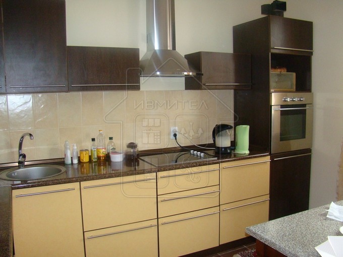 Контрастное сочетание цветов, множество шкафчиков для хранения, ниши для техники, удобная фурнитура.