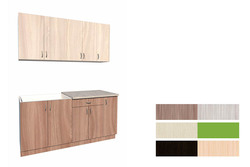 Кухня длиной 200 см. Фасады из ДСП двух цветов.