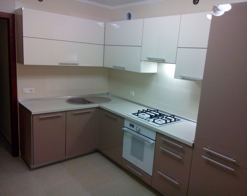 Кухня угловая с прозрачными ручками