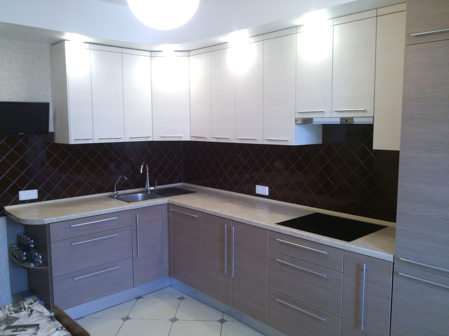 Кухня угловая коричневая с белым