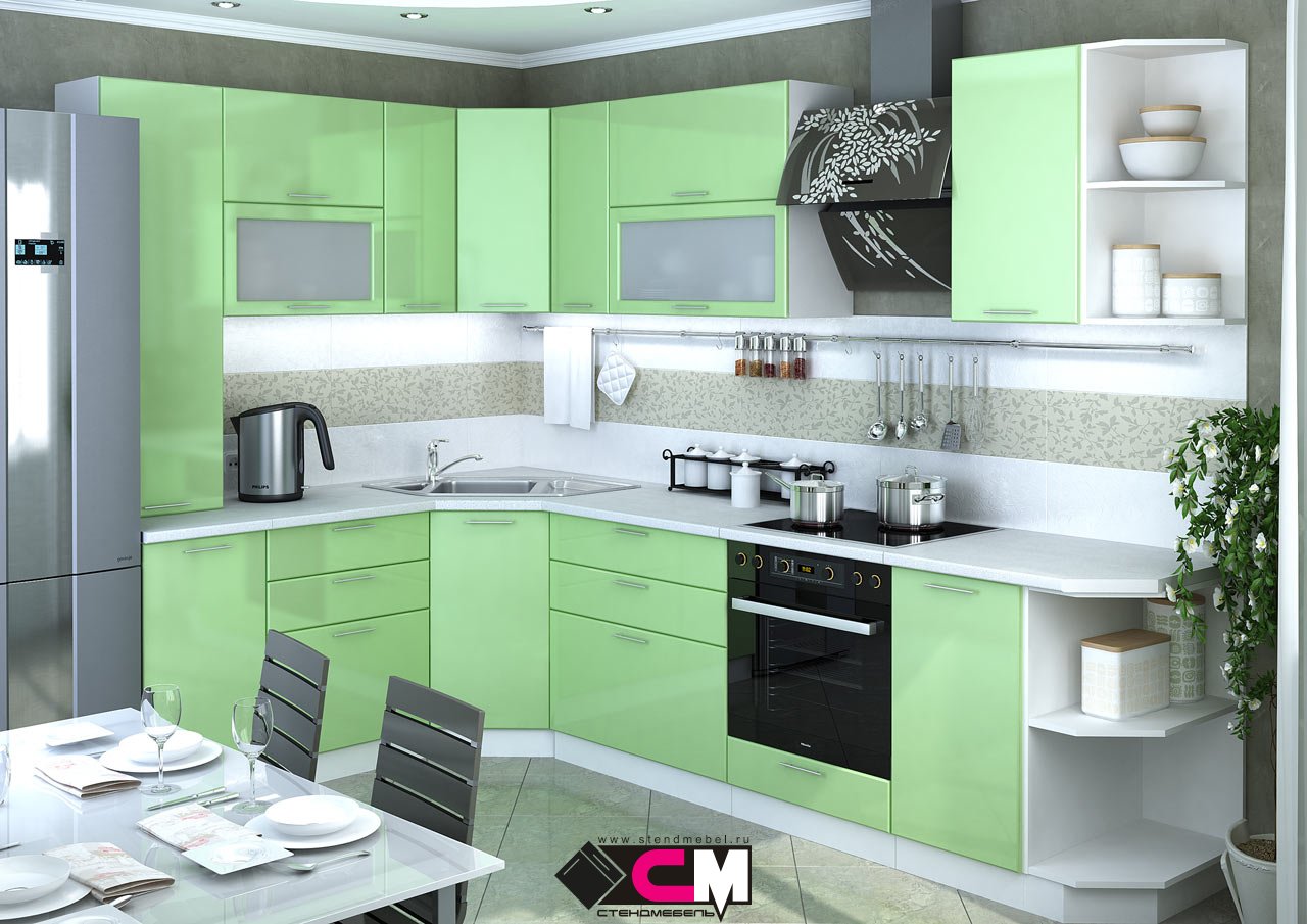 Кухня угловая «Ксения 1.85х2.95 м (Олива и глянец)»