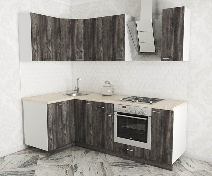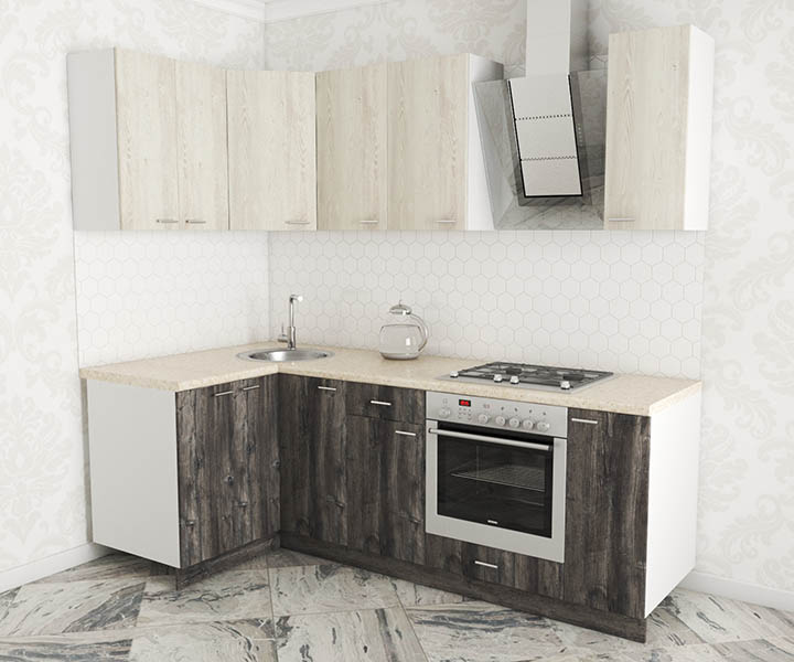 Кухня угловая «Луиза Люкс» 1.2x1.9 м Венге мали - Сосна касцина