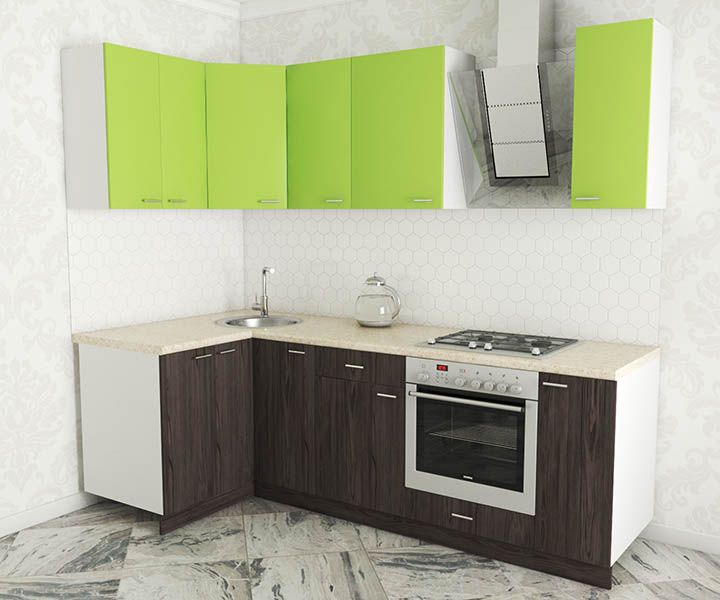Кухня угловая «Луиза Люкс» 1.2x2.4 м Флитвуд серая лава - Зеленый лайм