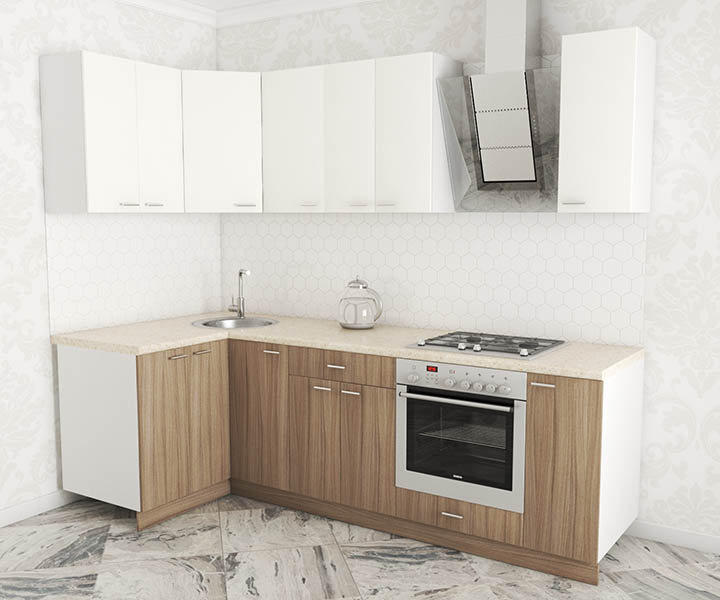 Кухня угловая «Прага 2.0х1.4м» - Белое дерево