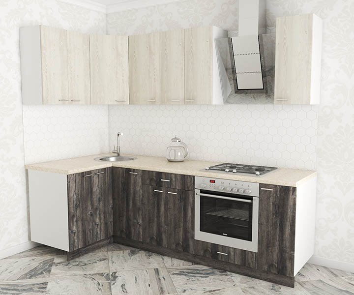Кухня угловая «Луиза Люкс» 1.2x2.5 м Сосна пасадена - Сосна касцина