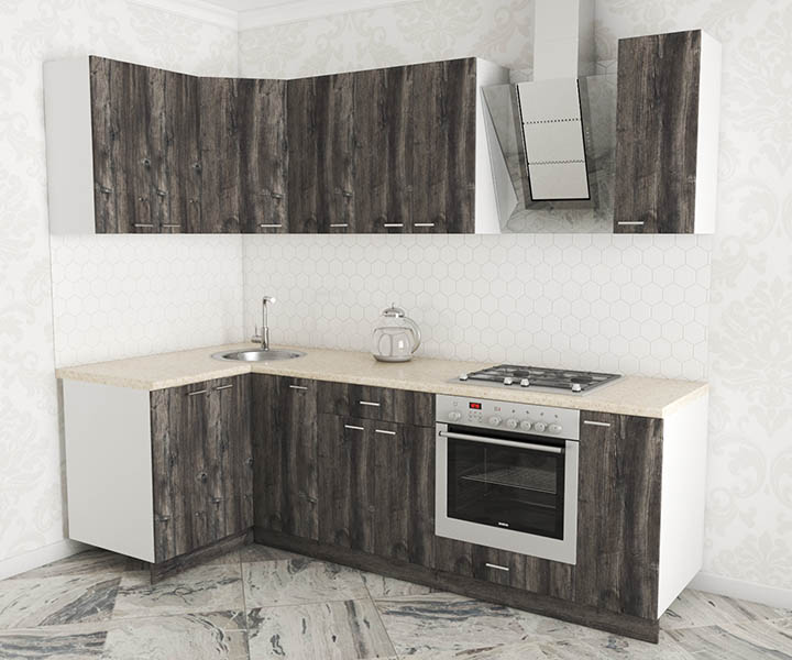 Кухня угловая «Луиза Люкс» 1.2x1.9 м Флитвуд серая лава - Флитвуд белый