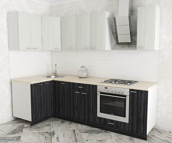 Материал фасада и корпуса: ЛДСП 16 мм. Ширина кухни 210 см.