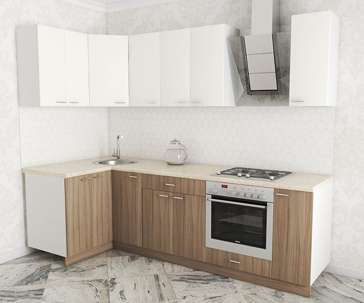 Кухня угловая «Луиза Люкс» 1.2x2.1 м Флитвуд шампань - Флитвуд белый