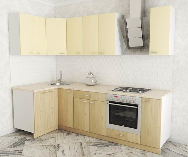Кухня угловая «Луиза Люкс» 1.2x2.6 м Флитвуд шампань - Ваниль
