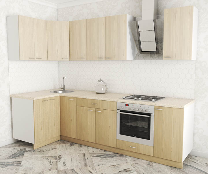 Кухня угловая. Отделка «под дерево». Материал – ЛДСП.