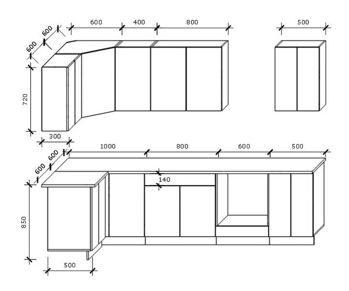 - Глубина нижних шкафов: 600 мм (по корпусу – 480 мм).