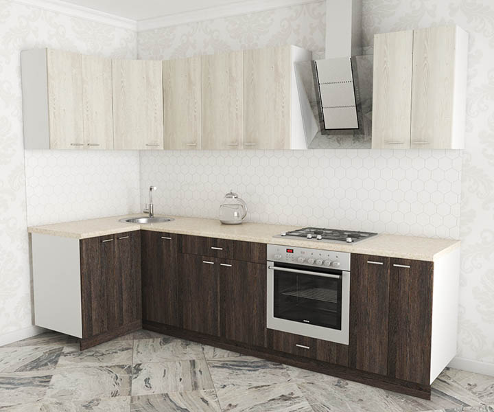 Кухня угловая «Луиза Люкс» 1.2x2.9 м Венге мали - Сосна касцина