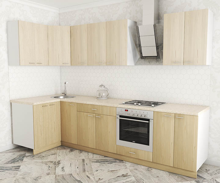 Кухня угловая «Луиза Люкс» 1.2x3.0 м Флитвуд шампань - Ваниль
