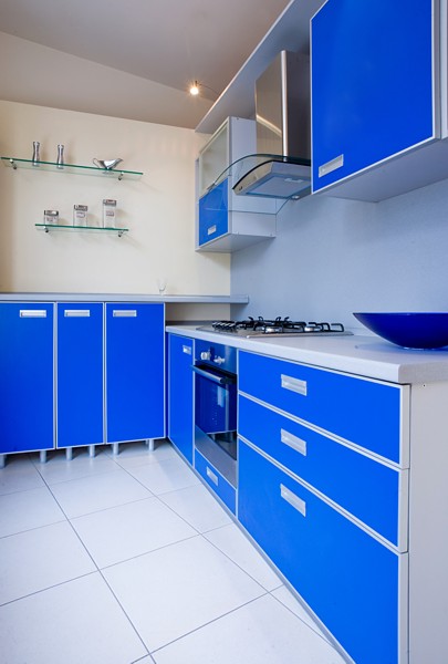 Кухня Монтанья синего цвета с матовым покрытием фасадов