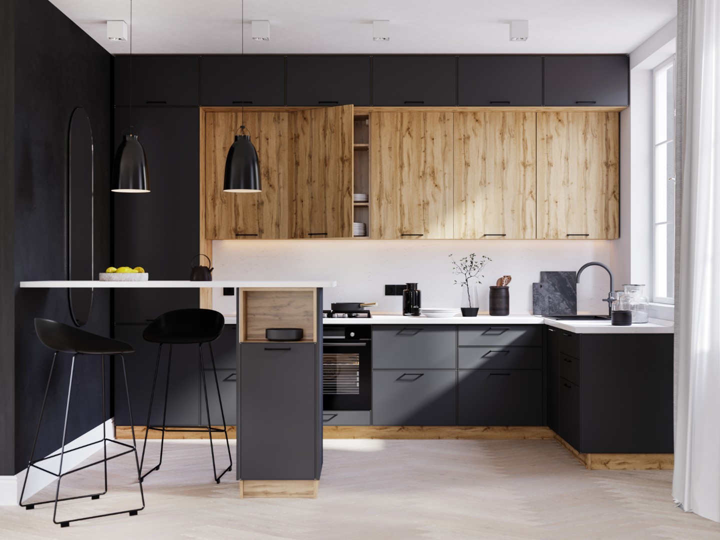 Цвет верхних фасадов: Черный трюфель, Дуб вотан