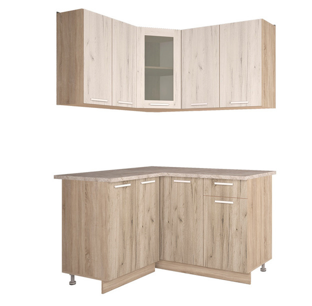 Кухня угловая «Луиза Люкс» 1.2x2.1 м Флитвуд шампань - Флитвуд белый