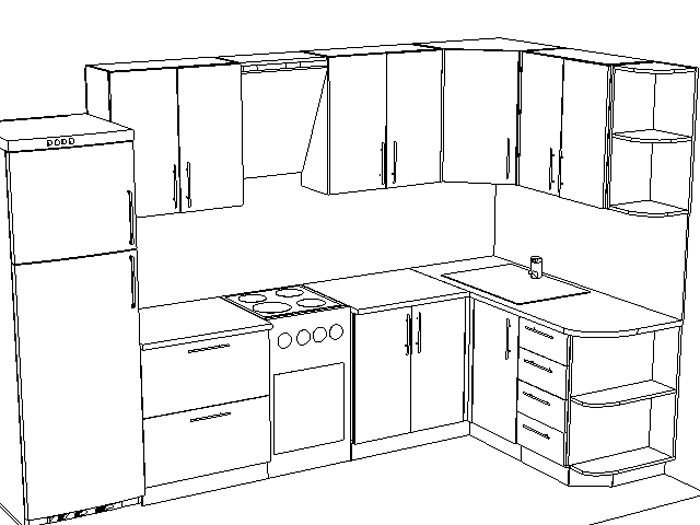 Массивные ручки. Наличие отделений для варочной панели и духовки.