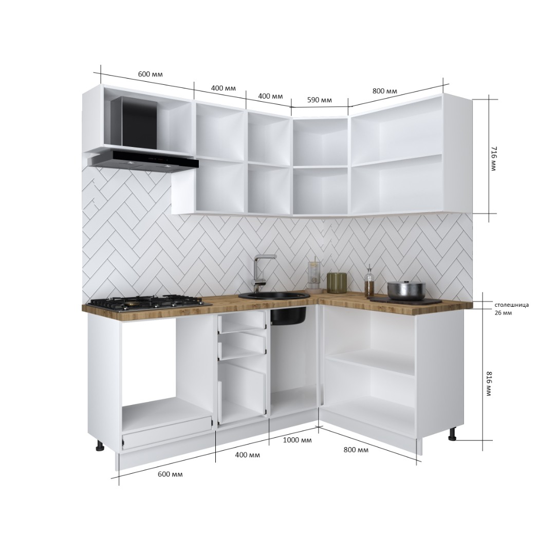 Кухня угловая «Прага 2.0х1.4м» - Белое дерево