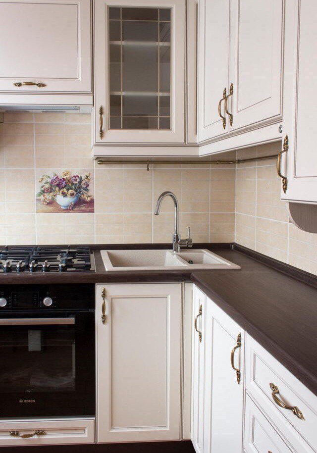 Комбинированные фасады из МДФ. Ширина кухни 190 см.