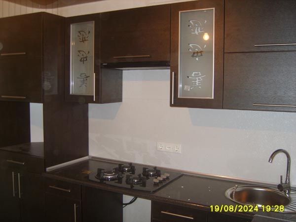 Верхние фасады со стеклом. Ширина кухни 190 см.