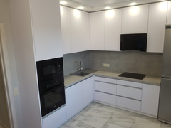 Белая угловая кухня без ручек из пластика
